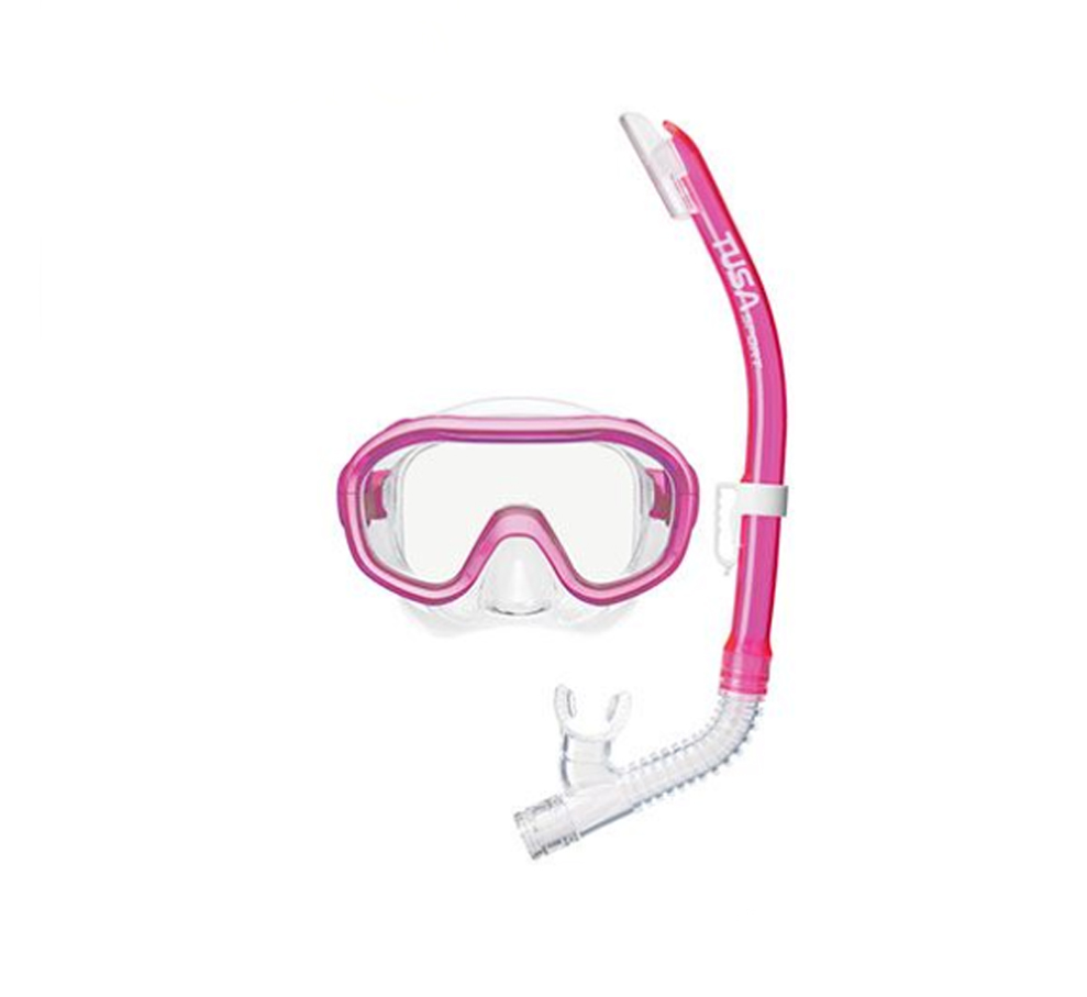 ClearVu tempered glass lens: for clear underwater vision Pure silicone skirt: with Round Edge Skirt technology for comfort Easy-adjust strap: with pinch-and-move buckle system Fits youth: ages 6–12 Snorkel: with Hyperdry semi dry-top technology to reduce water entry | Pure silicone mouthpiece: for comfort