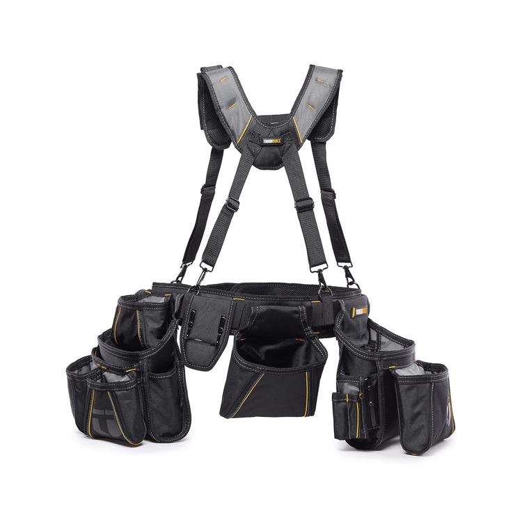| Heavy-Duty: Secures tools with padded pouches, steel buckle, and reinforced points Jobsite-Ready: Plastic-walled pockets, padded belt, and suspenders for even load Versatile Storage: 25 pockets, dual hammer loops, and sleeves for nail tools | Durable: 1680D fabric and rivet reinforcement for tough environments USA Quality: Designed, tested, and inspected in the USA |
