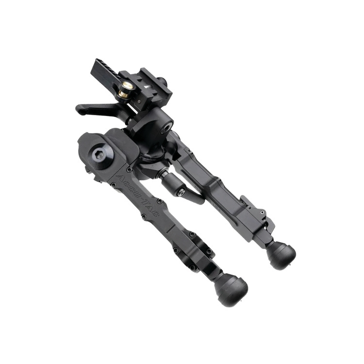 | Constructed from billet 6061 T6 aircraft-grade aluminum for strength and durability. Reinforced with high-strength steel hardware for reliable structural integrity. Four individual leg-angle positions provide versatile setup options. Five height adjustment settings allow precise elevation control. Height range from 6.25” to 9.125” supports adaptable positioning. | Adjustable stance from 9” to 11” enhances overall stability. Independent pan capability allows smooth horizontal tracking. Lockable cant system delivers smooth, precise leveling adjustment. Pan and cant functions lock securely using an adjustable lever. Finished in Flat Black with Type III MIL-SPEC hard anodizing for added surface protection. |