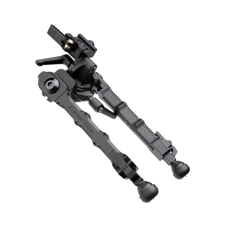 | Designed for secure attachment to Picatinny rail systems. Constructed from billet 6061 T6 aircraft-grade aluminum for strength and durability. Reinforced with high-strength steel hardware for dependable performance. Four adjustable leg-angle positions provide versatile setup options. Nine height adjustment settings allow precise elevation control. | Independent leg positioning enhances stability on uneven terrain. Pan capability enables smooth horizontal tracking. Cant capability allows stable alignment on angled surfaces. Pan and cant functions lock securely and independently using an adjustable lever. Engineered for precision shooting, competition, range, and field environments. |