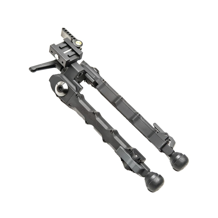 | Constructed from 6061 T6 billet aircraft-grade aluminum for superior durability and strength. Reinforced with high-strength steel hardware for dependable performance. Four adjustable leg-angle positions provide versatile positioning options. Nine height adjustment settings allow precise elevation control. Height range from 6.25” to 10.75” accommodates various shooting setups. | Adjustable stance from 9.25” to 15.75” enhances overall stability. Independent leg adjustment supports balanced positioning on uneven terrain. Canting capability locks securely with an adjustable lever for stable alignment. Compact 9” closed length allows convenient storage and transport. Finished in Flat Black with Type III MIL-SPEC hard anodizing for added surface protection. |