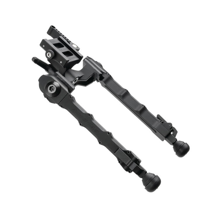 | Designed for secure and direct attachment to ARCA rail systems. Wide-body configuration lowers the center of support for improved balance and stability. Constructed from billet 6061 T6 aircraft-grade aluminum to provide exceptional strength and long-term durability. Reinforced with high-strength steel hardware for dependable structural integrity. Four adjustable leg-angle positions allow versatile positioning options. | Nine height adjustment settings provide precise elevation control. Lockable cant system delivers smooth, precise leveling adjustment. Adjustable lever securely locks cant position in place. Engineered for long-range, bench-rest, range, and airsoft applications. Designed and manufactured in the USA for consistent quality standards. |
