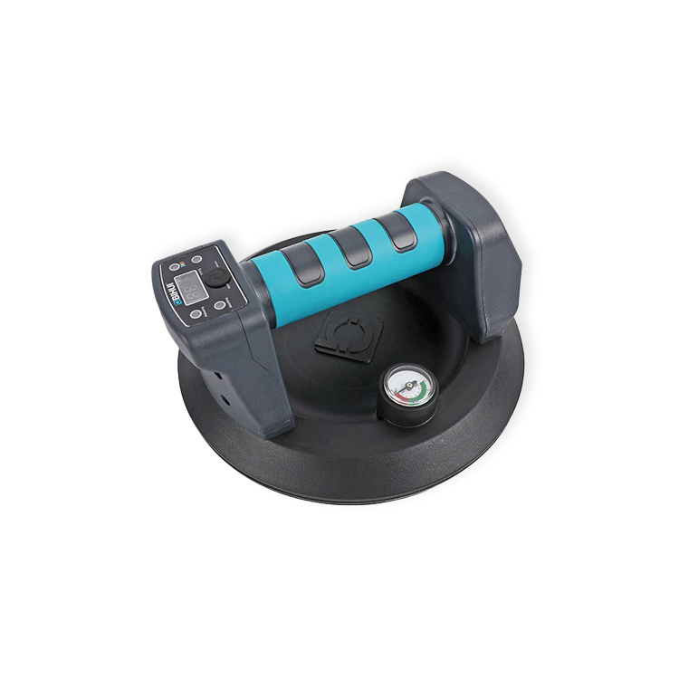 | 8" battery-powered vacuum suction cup Dual monitoring system with digital display and pressure gauge Automatic air replenishment for consistent suction 4000mAh 21700 lithium battery for extended use | Electric lifting capacity up to 309 lbs Anti-slip ergonomic handle for secure grip Suitable for smooth and textured surfaces Designed for safe handling and easy carrying |