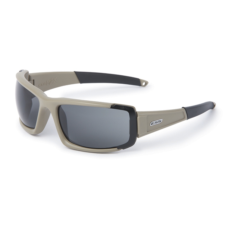 ESS CDI Max ballistic sunglasses in Terrain Tan with 2.4mm Smoke Gray lenses. Features MIL-SPEC high-impact protection, a larger frame for maximum wrap, and a lateral exchange system. Rugged eye pro for duty and downtime.