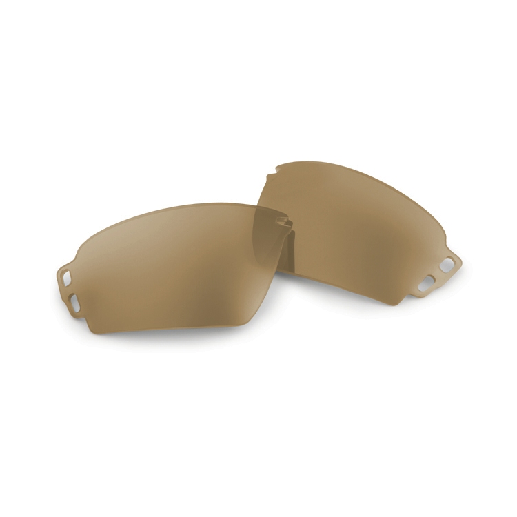 | Hi-Def Bronze tint filters blue light to enhance depth and contrast. High-impact 2.2mm ballistic-grade polycarbonate for superior durability. Optimized for visual clarity in flat light or overcast outdoor conditions. Provides 100% UVA/UVB protection to shield eyes from solar radiation. Compatible with ESS Crowbar™ rotating Lens Gate™ for rapid swaps. | Secure lens retention designed to withstand high-velocity impacts. Shatter-resistant ballistic optics provide crisp, distortion-free vision. Replacement lens set includes one matched pair of high-performance lenses. Model 101-315-005 specifically designed for Crowbar™ frame compatibility. Meets rigorous safety standards for high-velocity impact resistance. |