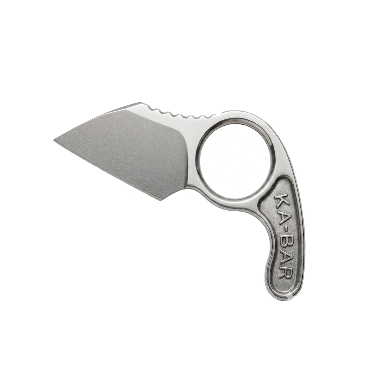 | Forged in the USA: High-quality American craftsmanship for reliable daily use. 425 High Carbon Stainless: Premium steel for corrosion resistance and strength. Compact 1.8" Blade: A nimble, small-profile blade designed for precision tasks. Les George Design: Created by an award-winning custom knife maker for KA-BAR. Durable Celcon Sheath: Includes a custom-molded sheath for safe, easy transport. | Sheepsfoot Blade Shape: Safety-focused tip design ideal for controlled cutting. Ultra-Lightweight 0.2 lb: Effortless to carry as a neck knife or in a pocket. 0.213" Blade Thickness: Substantial thickness for a small tool, ensuring vigor. 56-58 Rockwell Hardness: Expertly heat-treated for a long-lasting sharp edge. Integrated Steel Handle: Minimalist one-piece forged construction for durability. |