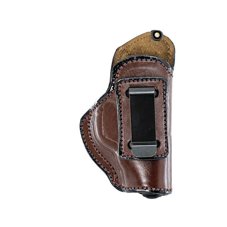 | Custom Molding: Tailored fit for Ruger LCP, S&W Bodyguard 380, and Sig P238. Top-Grain Leather: High-quality cowhide provides durability and a classic look. Protective Interior: Soft suede lining prevents finish wear on your equipment. Full-Length Shield: Integrated high back protects skin from metal contact. Robust Clip: Tempered steel spring clip secures to belts up to 1.75 inches. | Concealed Profile: Slim IWB design prevents visible printing through garments. Right-Hand Access: Optimized for a smooth, natural right-side drawing motion. Swift Attachment: Easy-on, easy-off clip system for convenient daily use. Premium Aesthetics: Elegant brown leather finish offers a professional appearance. Owner Assurance: Backed by a limited lifetime warranty for lasting confidence. |