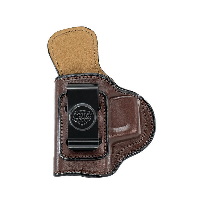 Premium Brown Leather IWB Holster for S&W 380 Shield EZ & Walther PPS M2. High-back sweat guard shields your skin, while the tempered steel clip ensures a secure fit on 1.75" belts. Suede-lined for protection. Slim, compact design with a lifetime warranty.