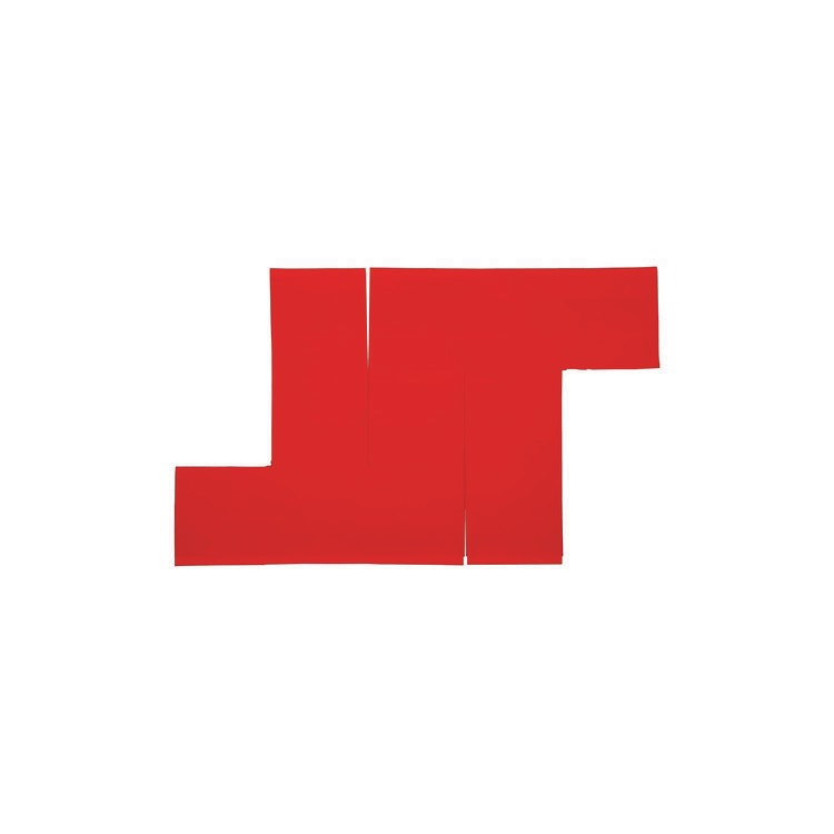 Mighty Line 2" red floor tape T's, 100-pack. Ideal for warehouses, factories, 5S layouts, and pallet marking. Peel-and-stick design for easy installation, durable, long-lasting, highly visible, and keeps industrial floors safe, neat, and organized.
