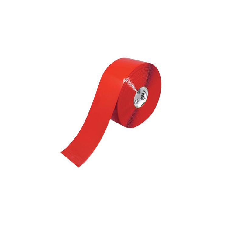 | 4" wide, 100' long red floor tape Durable 100% polyester construction Peel-and-stick for quick, easy installation Beveled edges for safe, smooth application Perfect for 5S, lean, and six sigma programs | Ideal for industrial facilities and warehouses Resists heavy foot, cart, and forklift traffic Works on concrete, wood, vinyl, or tile Long-lasting performance in harsh environments Bright red color for clear, visible floor marking |