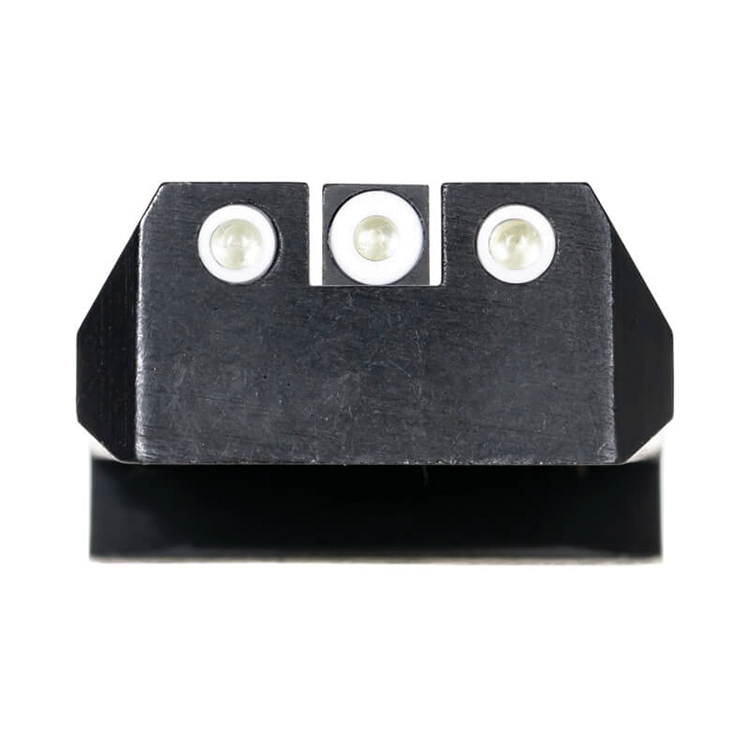 | Patented Perfect Dot™ injection-molded sleeve for visibility. Self-illuminating Swiss tritium vials for low-light use. High-visibility white front ring with daytime fluorescence. Precision CNC machined from high-quality steel for durability. Wear-resistant Black Nitride coating for corrosion protection. | Standard .160” front blade height for factory alignment. Includes a square notch rear sight with dual white ring accents. Fits Novak® .330” x 65° front dovetail cut specifications. Fits Novak® .495” x 65° rear dovetail cut specifications. Built in the USA using precision-sourced Swiss components. |