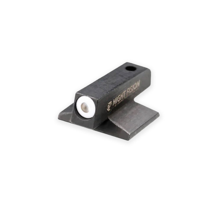 The Night Fision 1911 Front Night Sight features a White "Perfect Dot" and premium Tritium for 24/7 visibility. CNC machined steel with a Black Nitride finish. Novak-style dovetail with .160" blade height. Durable and corrosion-resistant. Made in USA.