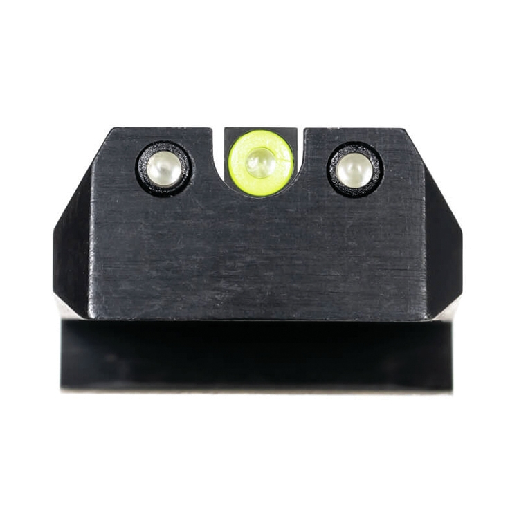 | Patented Perfect Dot™ injection-molded sleeve for visibility. Self-illuminating Swiss tritium vials for low-light use. High-visibility yellow front ring with daytime fluorescence. Precision CNC machined from high-quality steel for durability. Wear-resistant Black Nitride coating for corrosion protection. | Standard .160” front blade height for factory alignment. Fits Novak® .330” x 65° front dovetail cut specifications. Fits Novak® .495” x 65° rear dovetail cut specifications. Compatible with 1911 Commander and Government models. Built in the USA using precision-sourced Swiss components. |