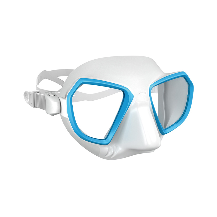 | Low Volume Design: Minimizes internal air space for effortless clearing at depth. Fusion Technology: Advanced production through fusion ensures a durable build. 3D Comfort Nose: Ergonomic preformed nose area for a comfortable, natural fit. Wide Field of View: Large lens geometry provides an expansive underwater vision. Micrometric Fixator: Precision adjustable buckles for a perfect, secure tension. | Tempered Glass: Ultra-resistant tempered glass lenses for maximum dive safety. Anti-Reflective: Opaque internal silicone prevents distracting light reflections. Hypoallergenic: Premium anti-allergic silicone protects sensitive facial skin. Salvimar Tested: Expertly designed and performance-tested for serious divers. Stylish Finish: Clean White and Blue colorway for a distinct, high-vis look. |