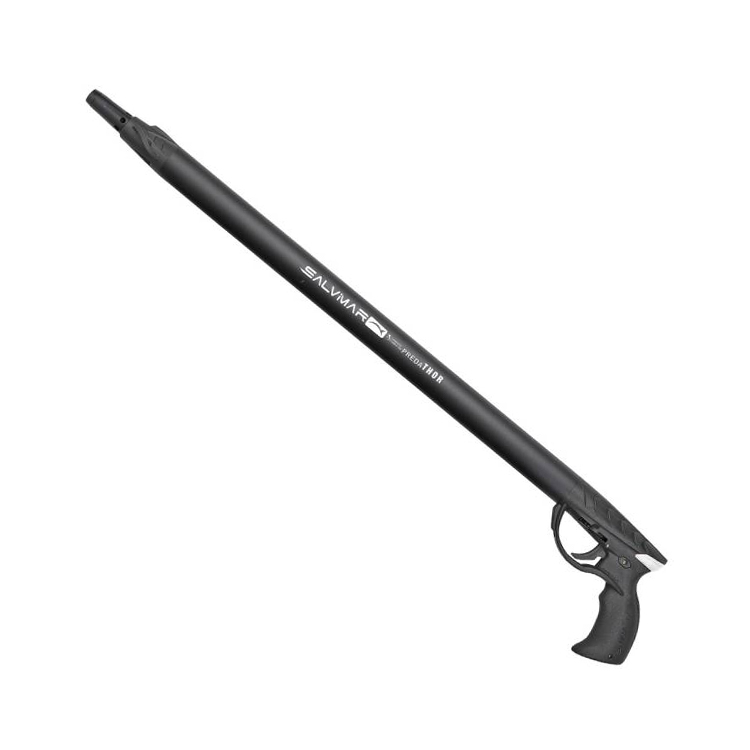 | Pneumatic Power: High-pressure internal air system provides immense striking force and velocity. Power Regulator: Allows for precise adjustment of air pressure to suit specific hunting conditions. Precision Barrel: 13mm internal diameter aluminum barrel designed for high-accuracy performance. Enhanced Acceleration: Muzzle head features oversized holes for rapid piston exit and shaft speed. Ergonomic Grip: 30% fiberglass-reinforced nylon handle angled for a sturdy, comfortable wrist position. | Compact Maneuverability: 40cm (15.74") total length is ideal for tight spaces and close-range hunting. Durable Shaft: Includes a 35cm (13.77") stainless 8mm shaft with a single floppy barb pointed tip. Automatic Line Release: Features a dynamic four-side mechanism that functions seamlessly upon firing. Reel Ready: Fully compatible with Salvimar side friction reels for managing larger prey. Italian Quality: Expertly manufactured in Italy, ensuring premium build standards and reliability. |