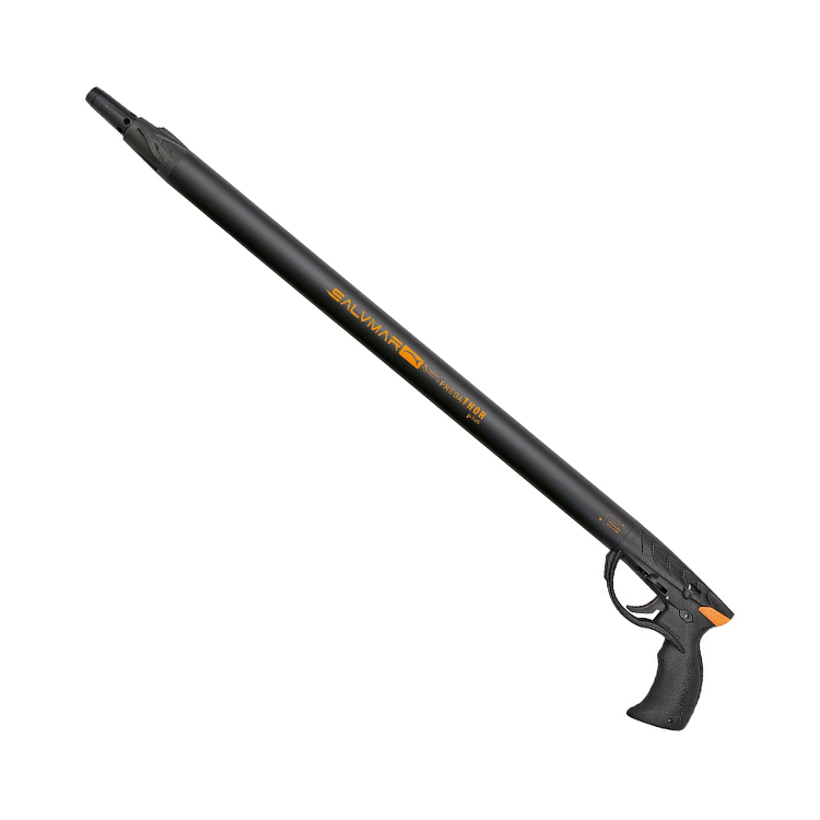 | Pneumatic Power: High-pressure air system delivers immense striking force. Power Regulator: Adjustable high/low settings to tune air pressure for each shot. Precision Barrel: 13mm internal diameter alloy barrel ensures high-precision aim. Ergonomic Grip: 30% fiberglass reinforced nylon handle for sturdy wrist support. Threaded Shaft: Includes a durable 8mm threaded shaft for reliable performance. | Automatic Release: Side line release mechanism functions seamlessly upon firing. Increased Speed: Widened port holes optimize piston exit and shaft acceleration. Perfect Balance: Engineered for comfort and easy handling during long hunts. Reel Compatible: Ready for mounting a Salvimar side friction reel for big game. Italian Quality: Expertly manufactured in Italy for premium diving performance. |