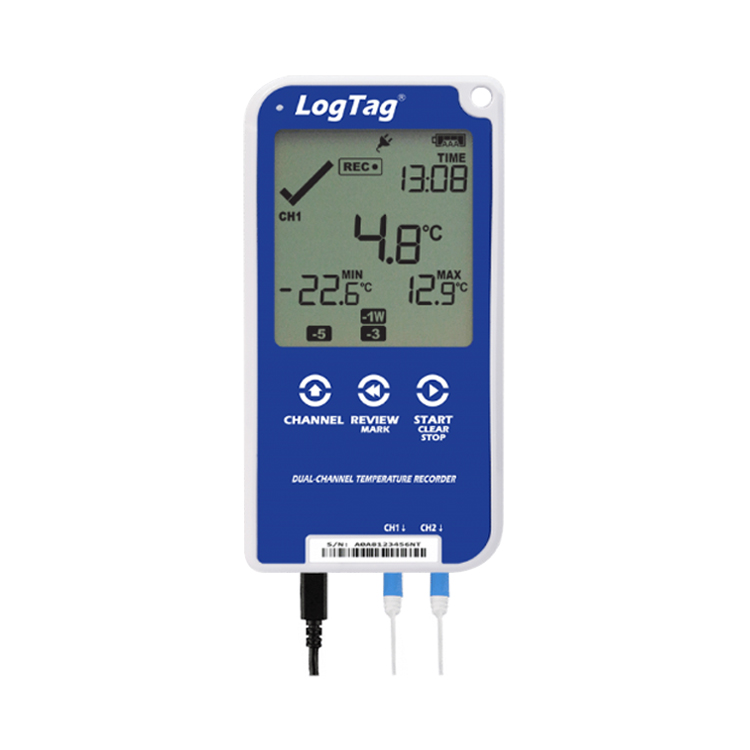 This multi-use temperature monitoring device features an external sensor for adaptable placement and precise readings across diverse environments. It boasts a 16,000-point memory capacity for comprehensive data logging and includes a clear display for real-time temperature monitoring. Data can be easily exported via USB in PDF format, facilitating expert-level analysis and record-keeping