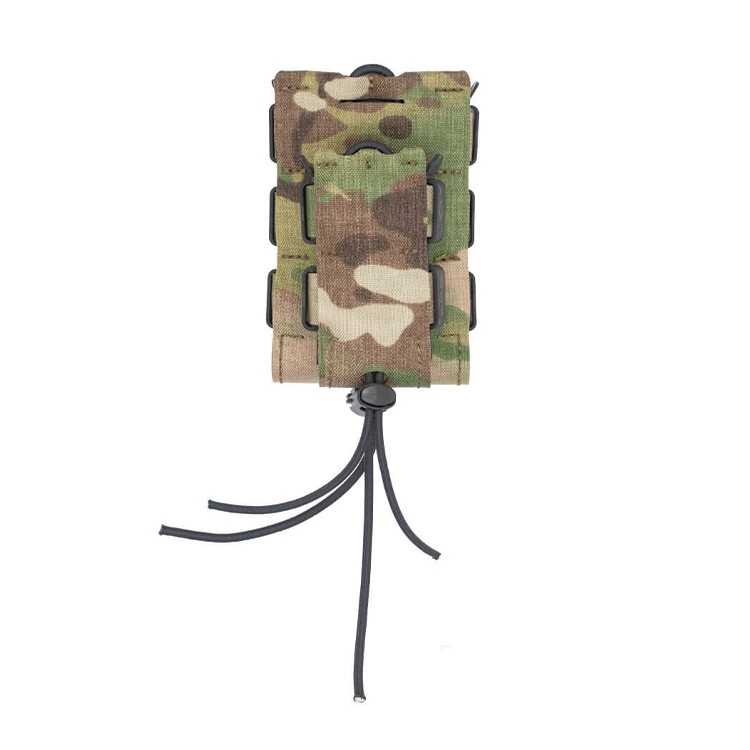 | 2-in-1 Design: Combines Urban Assault rifle and pistol pouches in one unit. Integrated Construction: Pistol pouch is securely sewn to the rifle pouch. Independent Bungee: Individual retention systems for each magazine. Universal Magazine Fit: Securely holds most rifle and pistol magazines. Versatile Utility: Compatible with certain radios, flashlights, and tools. | MultiCam Pattern: Genuine OCP-compatible pattern for tactical environments. Malice Clip Attachment: Includes Fight Light Malice Clip for MOLLE mounting. Secure Deployment: Retention remains active even when one pouch is empty. Space-Saving Profile: Maximizes belt or vest real estate by stacking gear. Tactical Durability: Built for professional field use and high-intensity ops. |