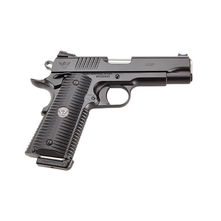 | Commander-Length Carbon Steel Frame: The Commander-size carbon steel frame provides balanced weight and durability while maintaining the classic 1911 handling characteristics. 4.25" Match-Grade Stainless Barrel: A precision-fitted stainless match-grade barrel and bushing help deliver consistent alignment and improved shooting accuracy. Forged Slide and Frame Construction: The pistol features Wilson Combat’s latest generation forged slide and frame components, carefully hand-fitted for precise tolerances and dependable performance. Ambidextrous Thumb Safety: The ambidextrous safety allows convenient operation for both right- and left-handed users while maintaining secure control. Eagle Claw Grip Texture: The Eagle Claw frontstrap and mainspring housing treatment offers a secure, tactile grip that remains comfortable during extended handling. | Bullet Proof Machined Components: Equipped with Wilson Combat’s machined Bullet Proof parts, including the thumb safety and magazine release, enhancing long-term durability. High-Grip Beavertail Grip Safety: The Bullet Proof beavertail grip safety promotes improved hand positioning and increased shooting control. Crisp 3.5–4.5 lb Trigger Pull: A tuned medium pad trigger provides a clean and consistent pull within the 3.5–4.5 lb range for improved precision. Fiber Optic Front Sight with Battlesight Rear: The combination of a fiber optic front sight and Battlesight rear allows quick sight alignment and improved visibility. Black Armor-Tuff Protective Finish: The Black Armor-Tuff coating enhances corrosion resistance while providing a durable and refined finish. |